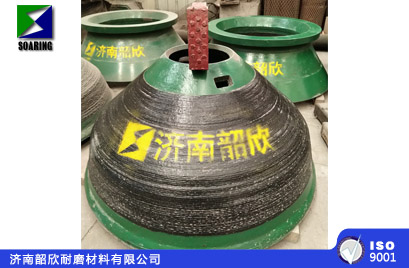 我們濟(jì)南韶欣耐磨材料有限公司,經(jīng)過(guò)多年研究試驗(yàn),成功開(kāi)發(fā)出新型復(fù)合鑲鑄圓錐破碎機(jī)襯板(動(dòng)、靜錐),經(jīng)過(guò)客戶現(xiàn)場(chǎng)的大量實(shí)驗(yàn),我們濟(jì)南韶欣耐磨材料有限公司生產(chǎn)的新型復(fù)合鑲鑄圓錐破碎機(jī)襯板(動(dòng)、靜錐),在苛刻的采礦現(xiàn)場(chǎng)操作環(huán)境中的運(yùn)行實(shí)踐證明:在相同破碎比或產(chǎn)品粒度條件下,使用壽命達(dá)到我公司普通材質(zhì)產(chǎn)品壽命的2-3倍。產(chǎn)品特點(diǎn)