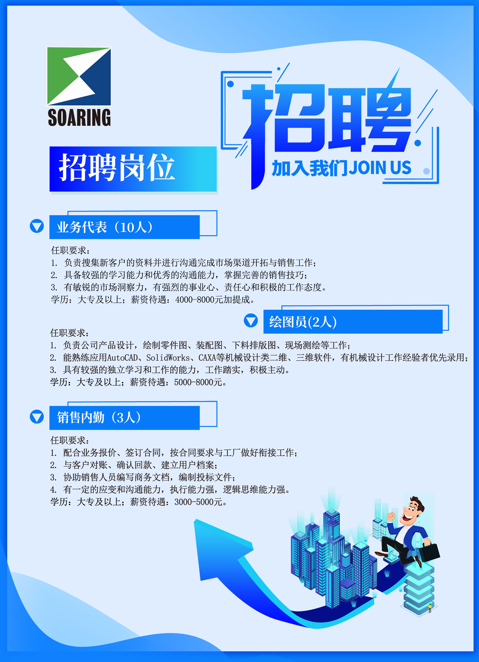 學(xué)歷:大專及以上;薪資待遇:4000-8000元加提成。